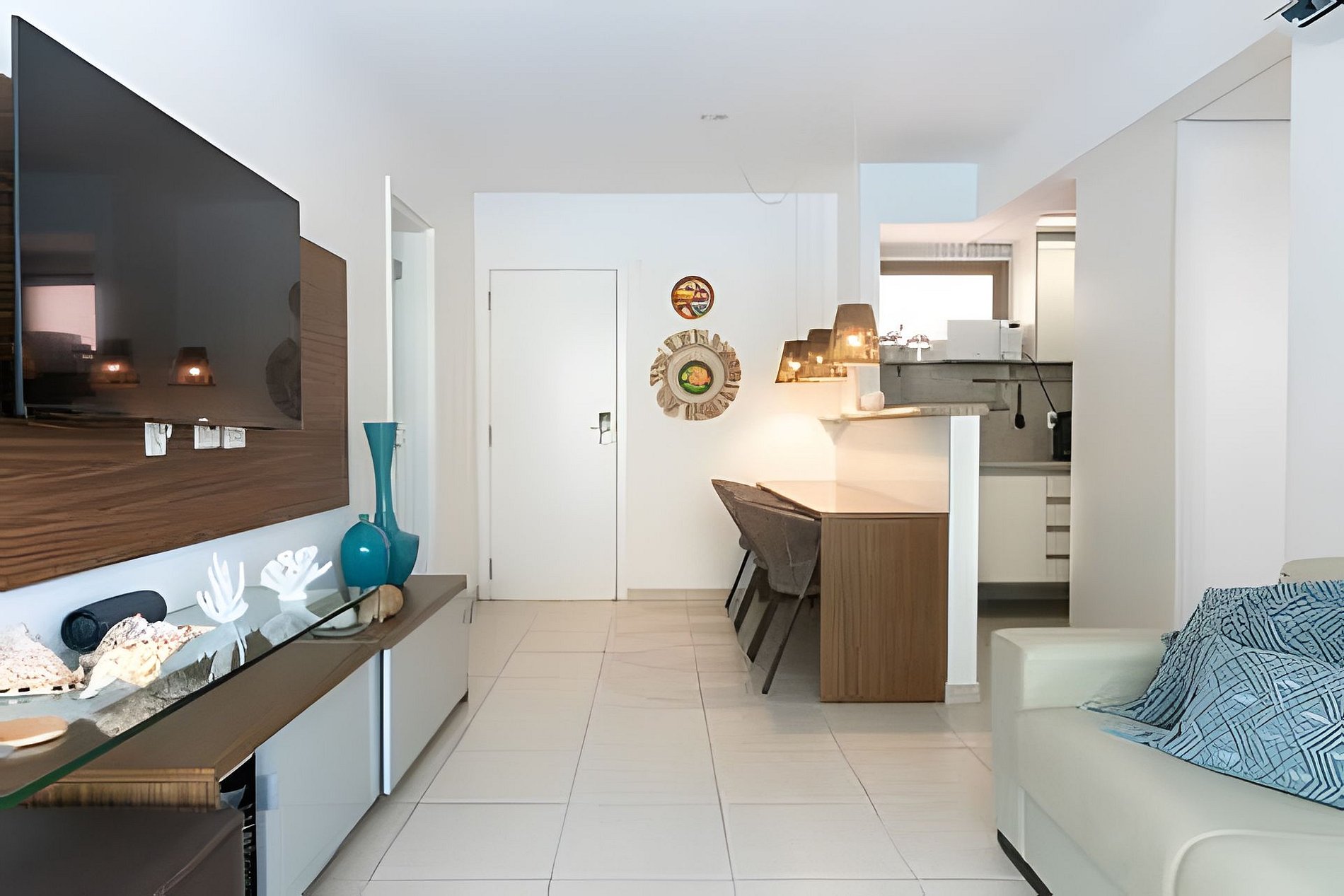 Relaxe com toda a família nesta acomodação tranquila. Nosso flat conta com cozinha completa, uma suíte, um quarto duplo. A sala tem um sofá cama. E uma linda varanda gourmet com uma vista linda para a piscina. Conta com uma ótima infraestrutura para comportar uma família ou grupo de até 8 pessoas. Possui vários equipamentos e instalações necessários a um maior conforto, como por exemplo 3 TVs, internet, wi-fi, ar-condicionados, 2 quartos suítes, sala, varanda gourmet e cozinha completa. Fica localizado no primeiro andar, de frente para a piscina, com vista parcial do Mar. Os hóspedes poderão utilizar todas as áreas comuns do condominio Ekora Prime Residence, que inclui a piscina, sauna, academia, salão de jogos, parque para crianças e campo de futebol. Também conta com estacionamento privado. Ekoara Residence - Muro Alto - Porto de Galinhas fica na Rua de Muro Alto, s/n, Praia de Muro Alto - Condomínio Ekoara Residence, no distrito de Praia do Muro Alto, em Porto de Galinhas, a uma distância de 8.7 km do centro. Aeroporto Internacional dos Guararapes - Recife fica a 33,9 km do hotel.